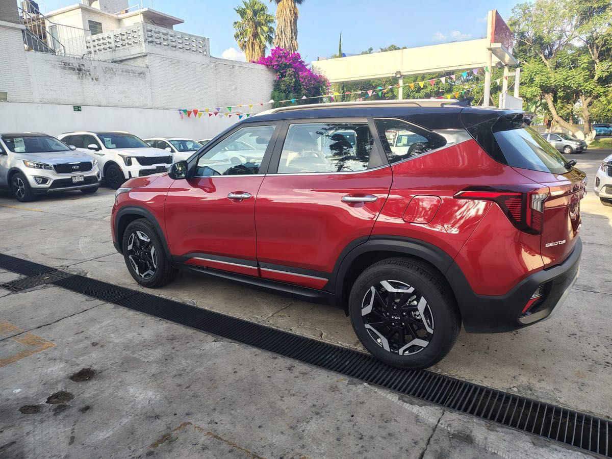 Kia SELTOS 2025 5p EX L4/1.5 Aut. Tipo de precio: Negociable Transmisión: Automática Dirección: Manual Vestidura: Tela Combustible o energía: Gasolina Segmento: Roadster / Cabrio / Convertible Color exterior: Azul Con aire acondicionado automático Tracción: Delantera Puertas: 5 Pasajeros: 5 Velocidades: Variable Cilindros: 4 Potencia en HP: 113 Torque máximo libras/pie: 106 Capacidad del tanque (l): 50 Consumo en ciudad (Km/l): 16.6 Consumo en carretera (Km/l): 24.7 Consumo en combinado (Km/l): 19.8 Diámetro de rines (pulgadas): 16 Largo del vehículo (mm): 4,385 Ancho del vehículo (mm): 1,800 Alto del vehículo (mm): 1,620 EQUIPAMIENTO: - Audio: bocinas, controles remotos del equipo de audio, interface para ipod, pantalla entretenimiento, puerto usb, radio satelital. - Confort: aire acondicionado, ajuste lumbar, altura del volante ajustable, botón de arranque del vehículo, espejo de vanidad, limpiador trasero, pedales ajustables, profundidad del volante ajustable, sensor de apertura, sensor de estacionamiento, sistema de control por voz para funciones, tercera fila de asientos, volante multifunciones. - Documentos: factura iva desglosado, refacturado por empresa, servicios de agencia. - Eléctrico: asiento conductor, cierre centralizado, computadora de viaje, elevadores de cristal, encendedor, encendido remoto, espejos laterales, inmovilizador. - Extras: rines de aluminio y/o aleación, spoilers. - Gadgets: bluetooth. - Seguridad: bolsa de aire conductor, bolsa de aire laterales, bolsas de aire cortina, cinturones de seguridad delanteros, cinturones de seguridad traseros, control de estabilidad, control de tracción, encendido diurno automático, faros de niebla, frenos abs, frenos de disco traseros, sistema de asistencia de frenado.